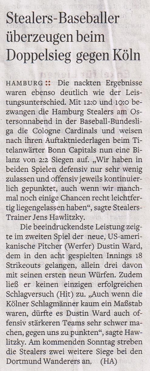 Die Hamburg Stealers haben mit zwei hohen Siegen in ihren ersten beiden Saison-Heimspielen ihre erneuten Play-off-Ambitionen in der Baseball-Bundesliga untermauert.…