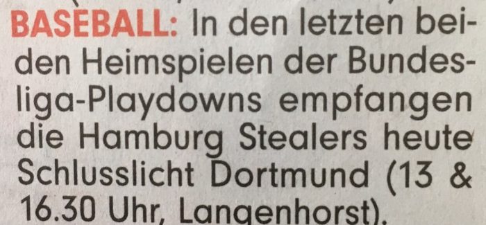 Die Hamburg Stealers dominieren weiterhin die Play-down-Runde der Baseball-Bundesliga Nord und kamen am Sonnabend mit 9:3 und 5:1 zu zwei…