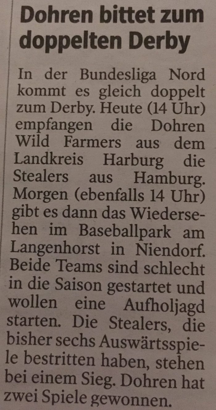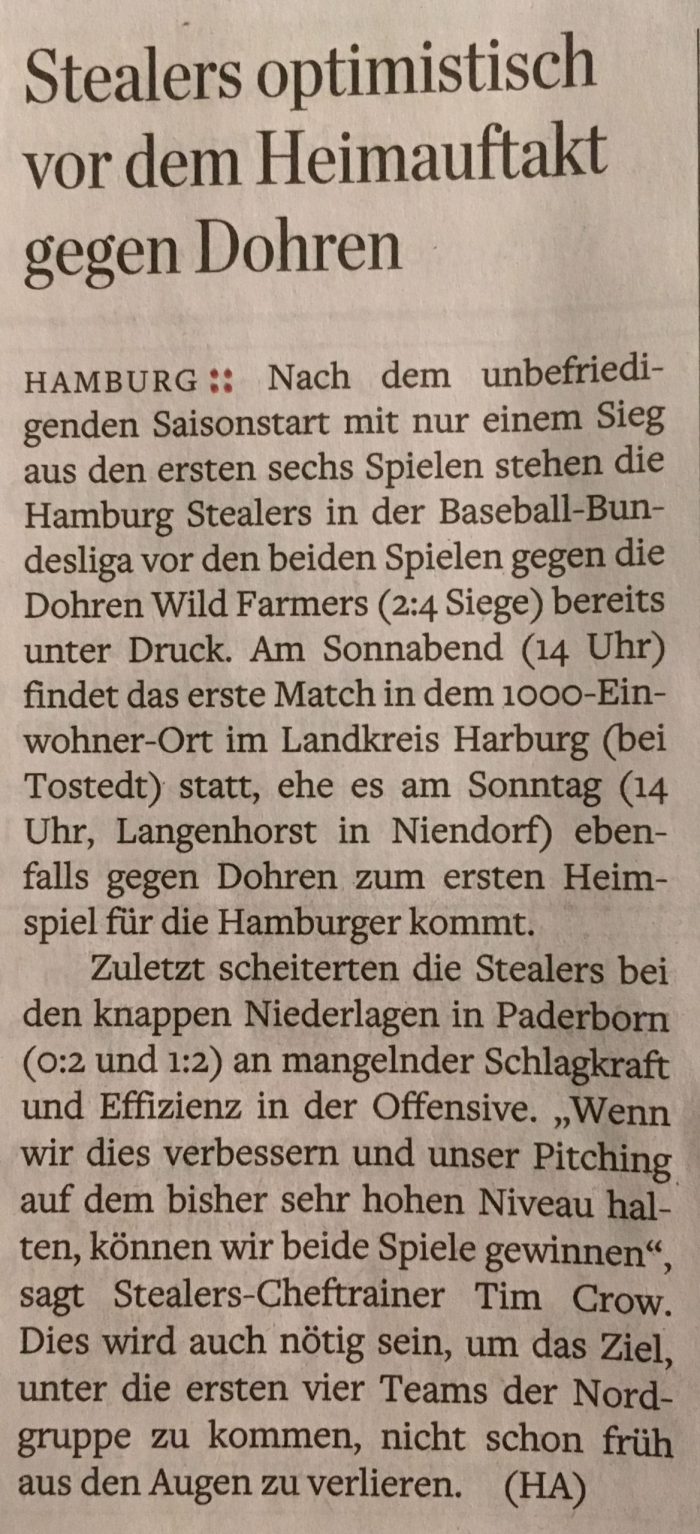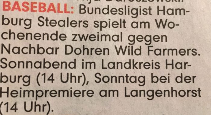 Erneut zwei Auswärtsspiele stehen für die Hamburg Stealers an diesem Sonnabend (12 und 15.30 Uhr) in der Baseball-Bundesliga an. Nach…