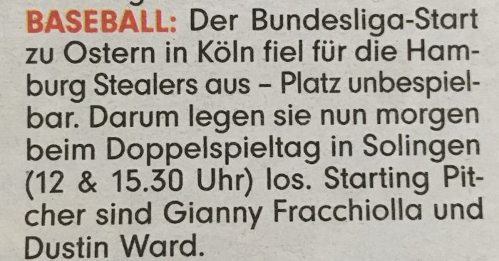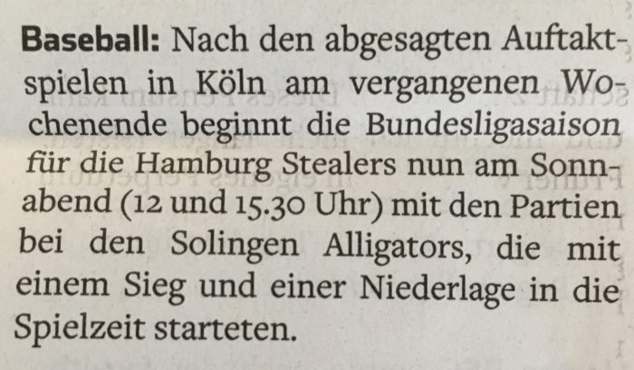 Die Hamburg Stealers sind mit einer Siegteilung (Split) in die neue Saison der Baseball-Bundesliga gestartet. Bei den favorisierten Solingen Alligators,…