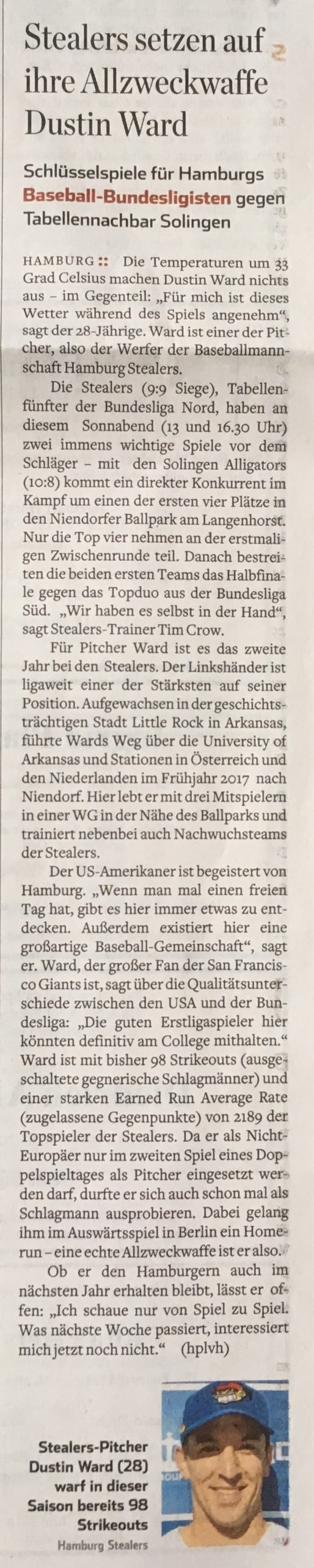 Mit zwei Heimniederlagen gegen den Tabellennachbarn Solingen Alligators haben es die Hamburg Stealers vorerst verpasst, auf den vierten Platz der…