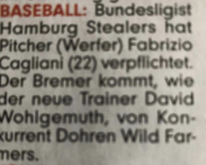 Die Hamburg Stealers haben ihre Personalplanung für die kommende Saison in der Baseball-Bundesliga weiter vorangetrieben und sich mit Fabrizio Cagliani…