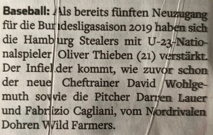 Die Personalplanung der Hamburg Stealers für die Baseball-Bundesligasaison 2019 schreitet weiter voran. Jetzt steht fest, dass auch der erst 18…