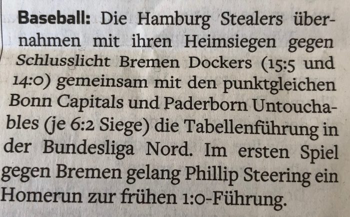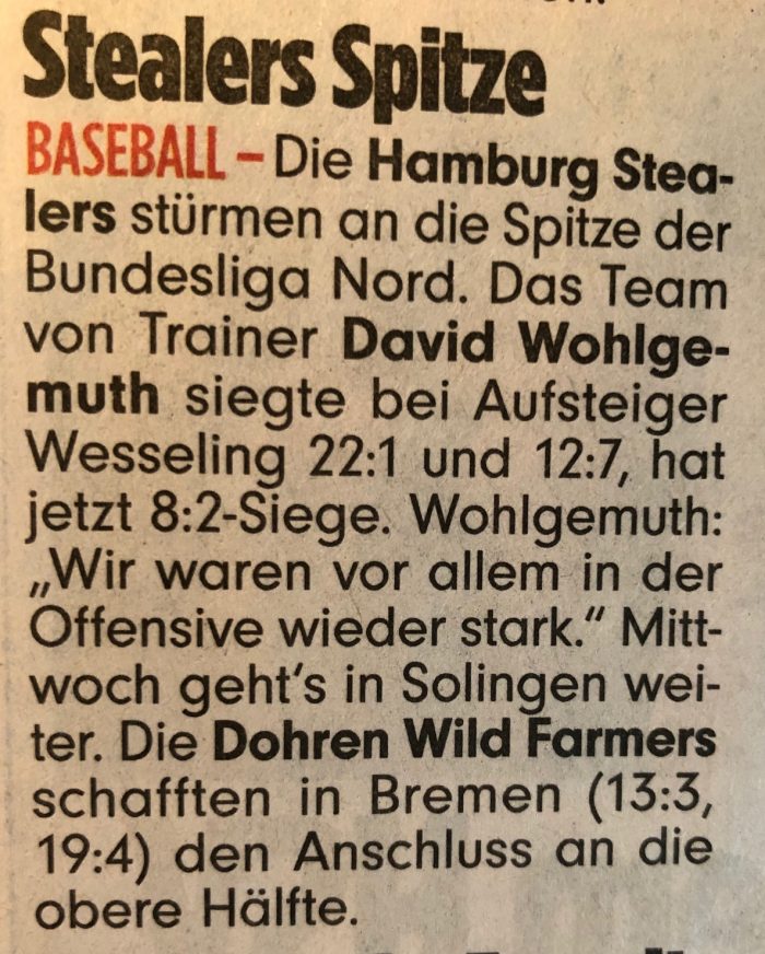 Die Hamburg Stealers wurden am Sonnabend in den beiden Auswärtsspielen beim Aufsteiger Wesseling Vermins ihrer Favoritenrolle gerecht und sind jetzt…