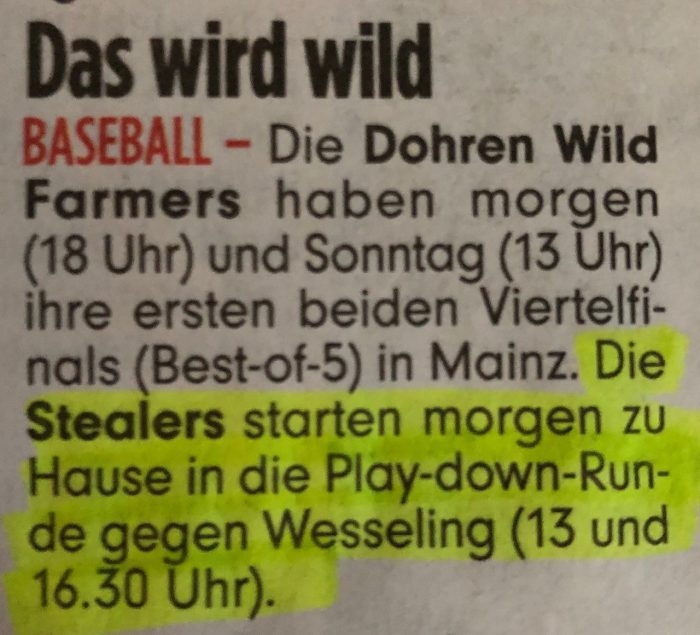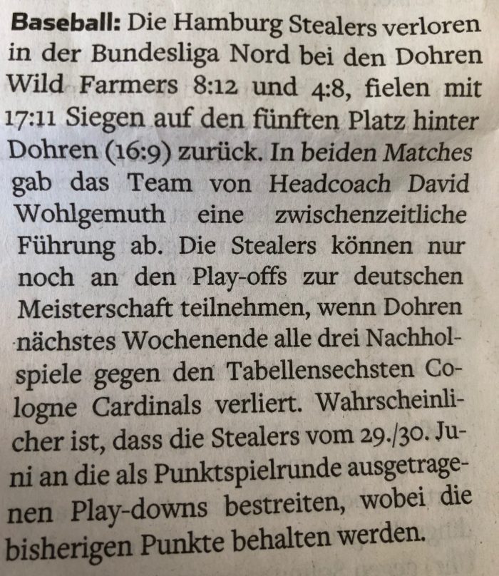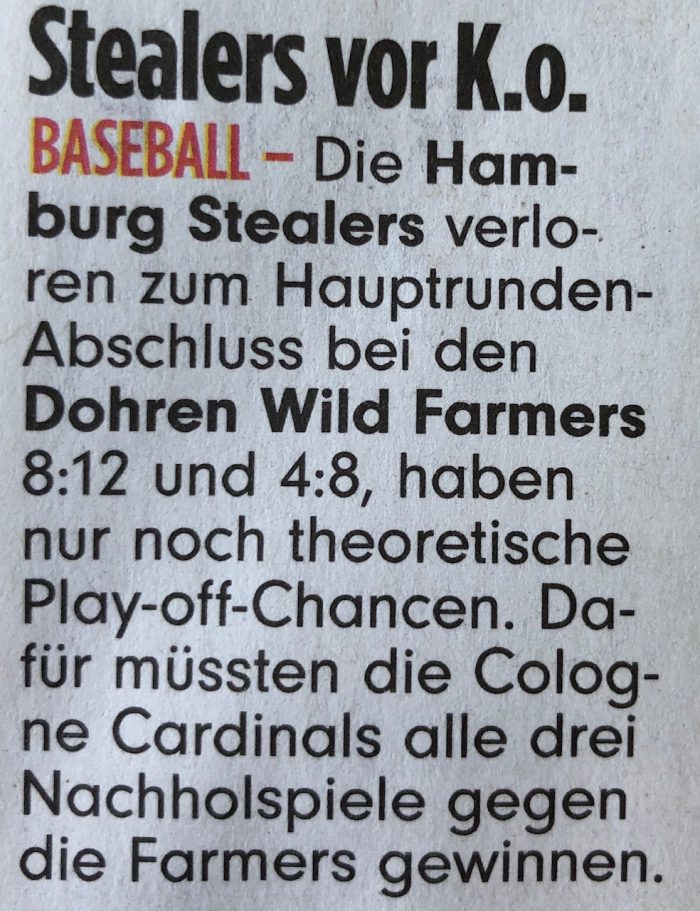 Die Hamburg Stealers verloren am Sonnabend ihre beiden Auswärtsspiele in der Baseball-Bundesliga beim Nord-Rivalen und Tabellennachbarn Dohren Wild Farmers mit…