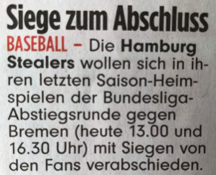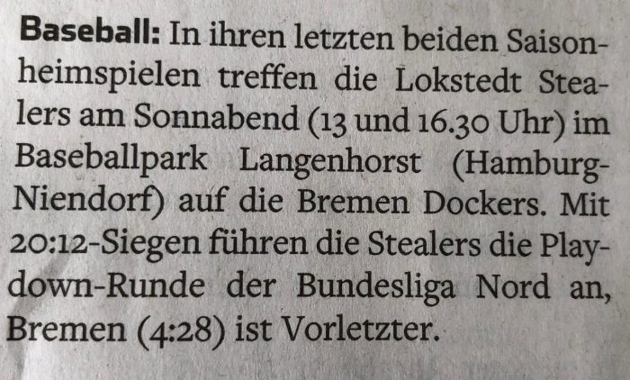 Die Hamburg Stealers besiegten in der Play-down-Runde der Baseball-Bundesliga Nord am Sonnabend die Bremen Dockers mit 5:4 und bleiben in…