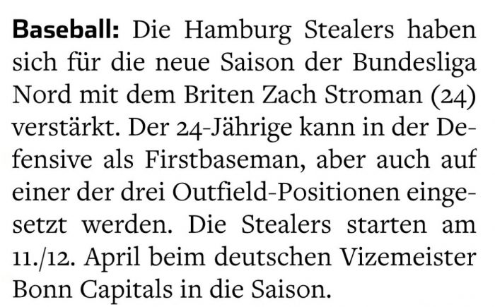 Rund sieben Wochen vor dem Start in die neue Saison der Baseball-Bundesliga Nord haben sich die Hamburg Stealers mit einem…