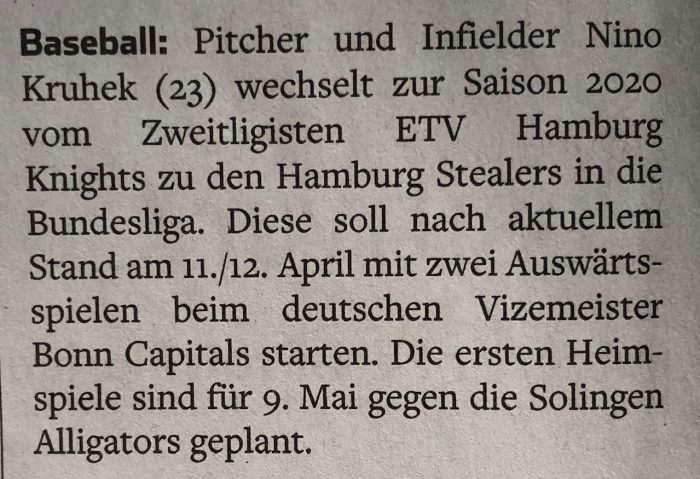 Die Hamburg Stealers können in der diesjährigen Saison der Baseball-Bundesliga auch auf die sportlichen Dienste von Nino Kruhek setzen. Der…