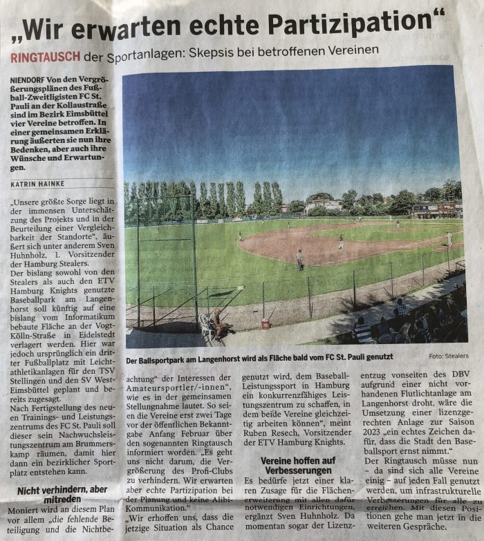 Sehr überraschend sind am Freitag, den 28. Januar 2022 die Baseballvereine Hamburg Stealers e.V. und ETV Hamburg Knights sowie die…