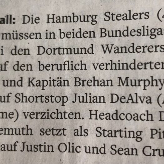 DetailsDie Hamburg Stealers konnten in ihren beiden Auswärtsspielen der Baseball-Bundesliga Nord bei den Dortmund Wanderers das von Headcoach David Wohlgemuth…