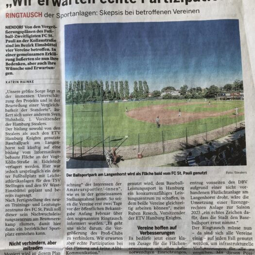 DetailsSehr überraschend sind am Freitag, den 28. Januar 2022 die Baseballvereine Hamburg Stealers e.V. und ETV Hamburg Knights sowie die…