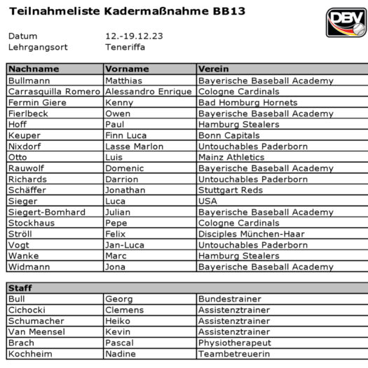 DetailsUnsere talentierten Spieler Paul Hoff und Marc Wanke sind derzeit mit Coach Kevin van Meensel als Co-Trainer bei der U18-Baseball-Nationalmannschaft…