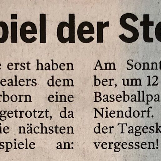 DetailsDie Hamburg Stealers haben in der Baseball-Bundesliga erneut einem favorisierten Team eine Siegteilung abgerungen. Am Sonnabend verlor das Team von…