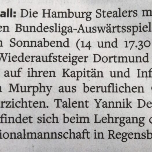 DetailsDie Hamburg Stealers streben in ihren beiden Auswärtsspielen an diesem Sonnabend (14 und 17.30 Uhr) bei den Dortmund Wanderers ihren…