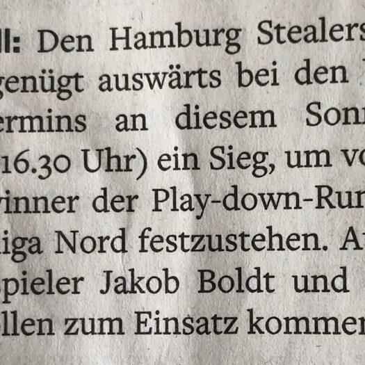 DetailsNach drei Heimspieltagen in Folge werden die Hamburg Stealers an diesem Sonnabend (13 und 16.30 Uhr) ihre ersten Auswärtsspiele in…