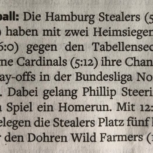 In ihren beiden letzten Heimspielen der regulären Punktspielsaison in der Baseball-Bundesliga empfangen die Hamburg Stealers am Pfingstwochenende die Solingen Alligators,…