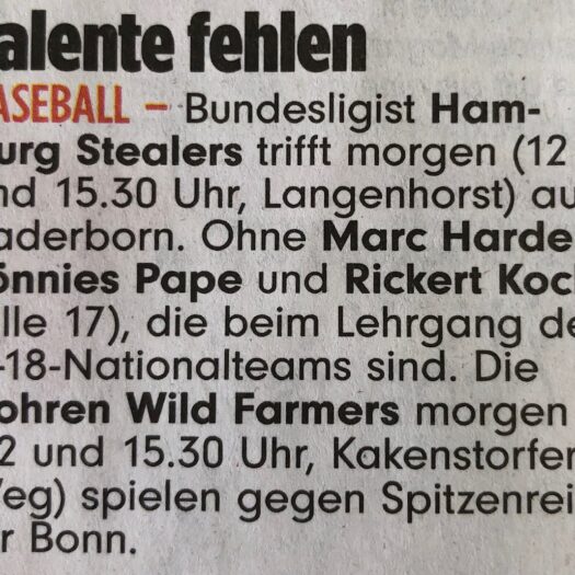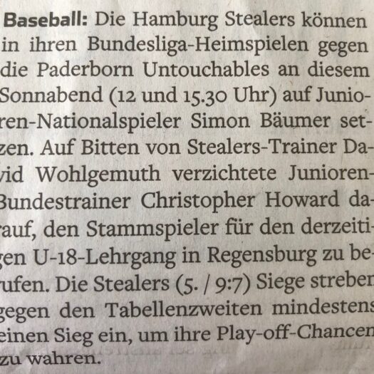 DetailsMit einem kombinierten No-Hitter starteten die Schüler der Hamburg Stealers am Sonntag gegen die Westend 69ers in die Saison und…