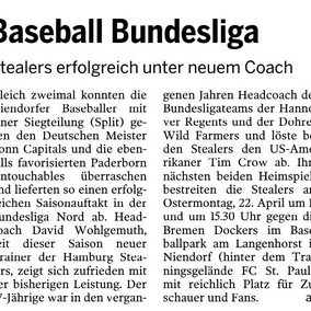 DetailsDrei Wochen nach ihrem Saisonauftakt in der Baseball-Bundesliga treten die Hamburg Stealers am Ostermontag (12 und 15.30 Uhr) erneut im…