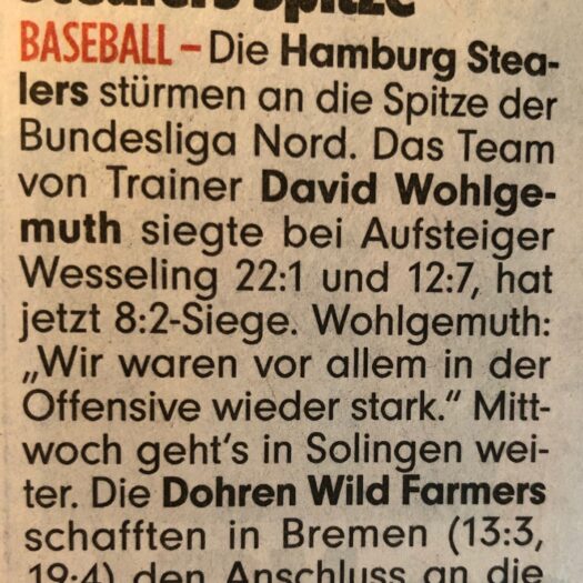 DetailsDie Hamburg Stealers wurden am Sonnabend in den beiden Auswärtsspielen beim Aufsteiger Wesseling Vermins ihrer Favoritenrolle gerecht und sind jetzt…