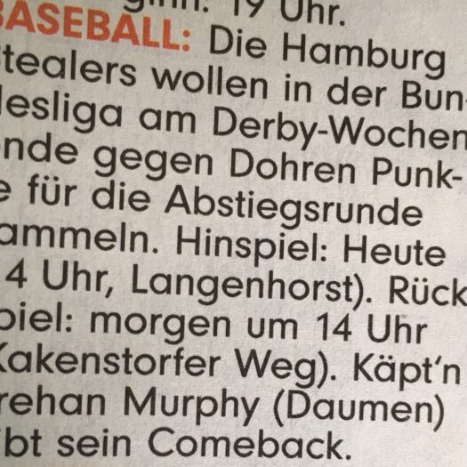 DetailsIn den Sommerferien 2018 findet in Hamburg-Niendorf im Rahmen des Hamburger Ferienpasses ein Baseballcamps für Jungen und Mädchen im Alter…