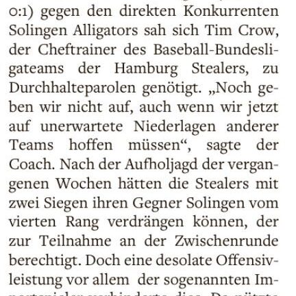 DetailsMit zwei Heimniederlagen gegen den Tabellennachbarn Solingen Alligators haben es die Hamburg Stealers vorerst verpasst, auf den vierten Platz der…