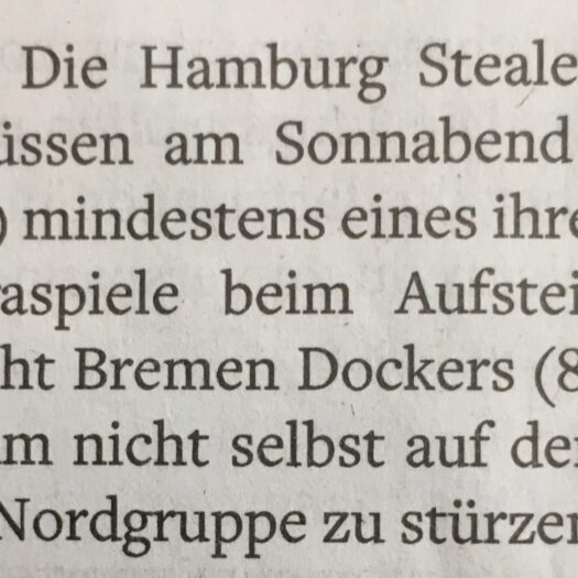 DetailsNach den beiden knappen und ärgerlichen Niederlagen bei den Paderborn Untouchables am vergangenen Sonnabend gehen die Hamburg Stealers an diesem…