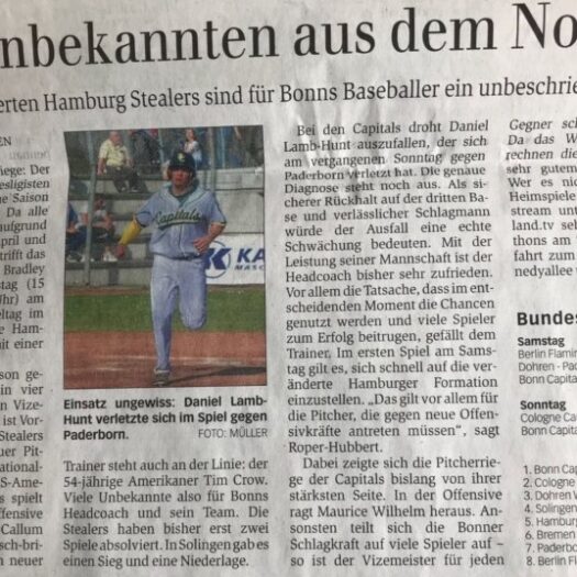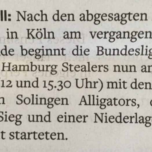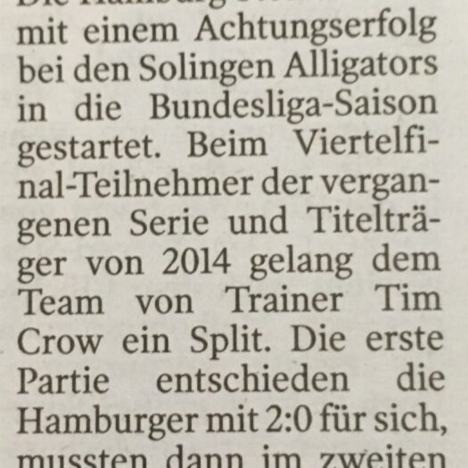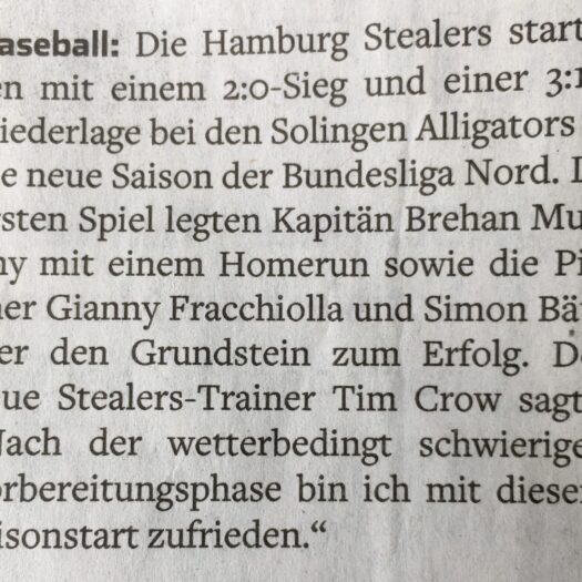 DetailsDie Hamburg Stealers sind mit einer Siegteilung (Split) in die neue Saison der Baseball-Bundesliga gestartet. Bei den favorisierten Solingen Alligators,…
