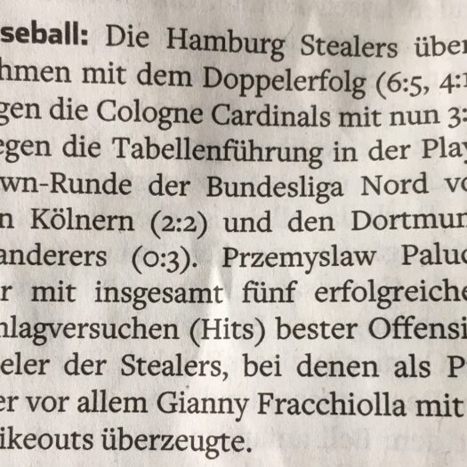 DetailsDie Hamburg Stealers haben die Play-down-Runde der Baseball-Bundesliga mit einem Split bei den Cologne Cardinals (5:2 und 0:3) am Sonnabend…