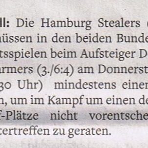 DetailsNur zwei bzw. drei Tage nach den beiden Nord-Derbys bei den Dohren Wild Farmers treten die Hamburg Stealers in der…