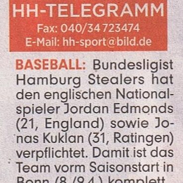 DetailsDie Personalplanung der Hamburg Stealers für die neue Saison der Baseball-Bundesliga ist vorerst abgeschlossen. Als letzter Neuzugang stieß in dieser…