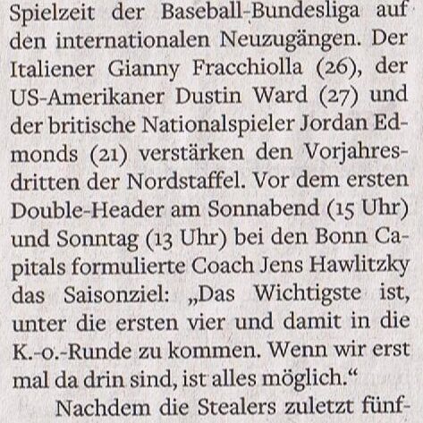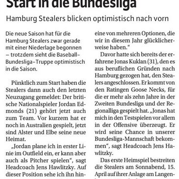 DetailsNach den Wochen der intensiven Vorbereitung starten die Bundesliga-Baseballer der Hamburg Stealers an diesem Wochenende mit viel Zuversicht in die…