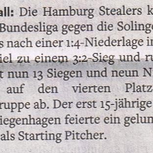 DetailsTrotz erheblicher personeller Probleme konnten sich die Hamburg Stealers im Spitzenduell der Baseball-Bundesliga Nord gegen die als Tabellenzweite angereisten Solingen…