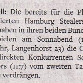 DetailsNach einem spielfreien Wochenende bestreiten die bereits für die Play-offs qualifizierten Hamburg Stealers an diesem Sonnabend (13 und 15.30 Uhr)…
