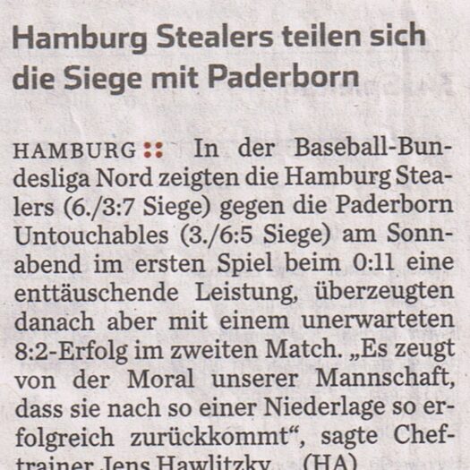 DetailsEin überzeugendes Comeback zeigten die Hamburg Stealers am Sonnabend in der Baseball-Bundesliga Nord im Doubleheader gegen den Tabellendritten Paderborn Untouchables.…