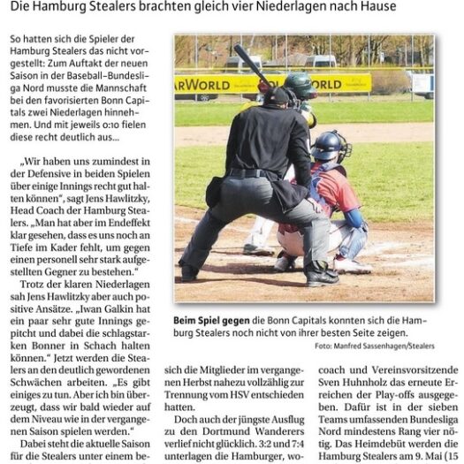 DetailsBereits an diesem Freitag, dem „Tag der Arbeit“, müssen die Hamburg Stealers ihre nächsten beiden Auswärtsspiele in der Baseball-Bundesliga Nord…